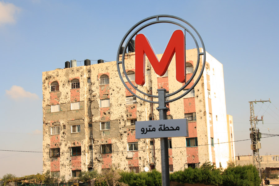 A small handful of Bedouin families living in the Gaza Strip ran thousands of smuggling tunnels beneath the Egypt-Gaza Strip separation barrier. In part to transport weapons between Rafah in Egypt and the Rafah Palestinian refugee camp and in part to import every day goods, some of the tunnels are well built and include decent infrastructure, while others are at risk of deadly sewage leaks. The inspired work of Palestinian artist Mohamed Abusal, a photo exhibit at the French Cultural Center depicts what Gaza City would look like if these subterranean spaces were converted into an underground metro facility .