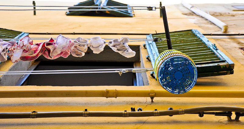 “The project, that was named ‘Intimacy under the Wires’,” she continues, “reveals images of laundry both intimate and unconfined while their snoopy character makes laundry, a seemingly prosaic subject, all the more intriguing.”
