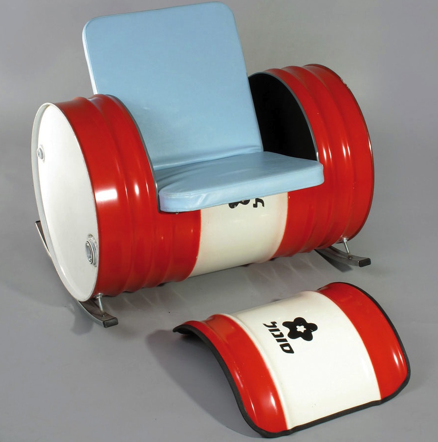 Junktion Studio is represented by the Sonol Barrel chair seen above, made out of a discarded metal barrel that was considered industrial waste. This handmade, limited edition piece was fashioned out of the barrel, plywood, sponge and upholstery materials.
