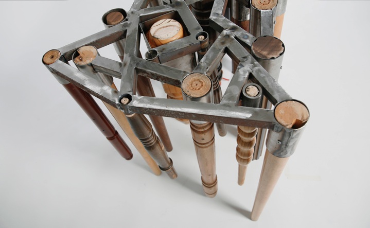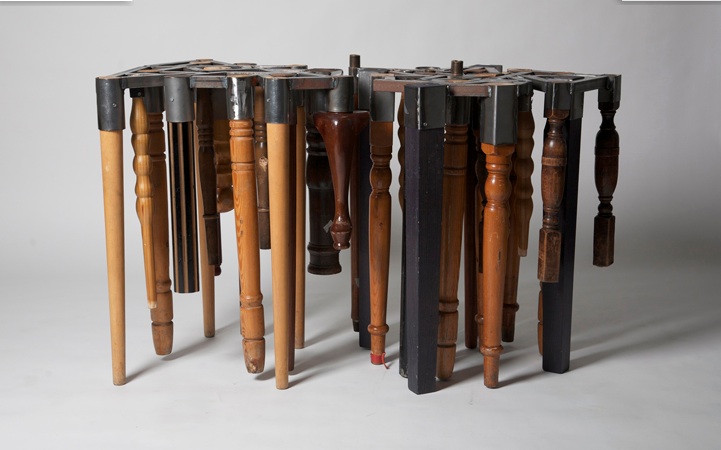The 46 table is made out of 46 discarded table legs that have been cut to approximately the same size and melded together. (Afnan’s concept here is somewhat similar to Reddish Studio’s upcycled menorah, made of different sized found candlesticks.)