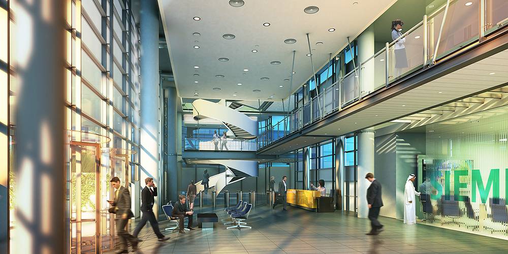 Let it be known that we have begun to reach a point – given the scale of energy, climate, and natural resource issues – where we consider any massive expenditure of brand new materials and energy unsustainable, but we do have to give Sheppard Robson credit for reducing the Siemen’s Headquarter’s footprint to a fraction of what something of this scale could have.