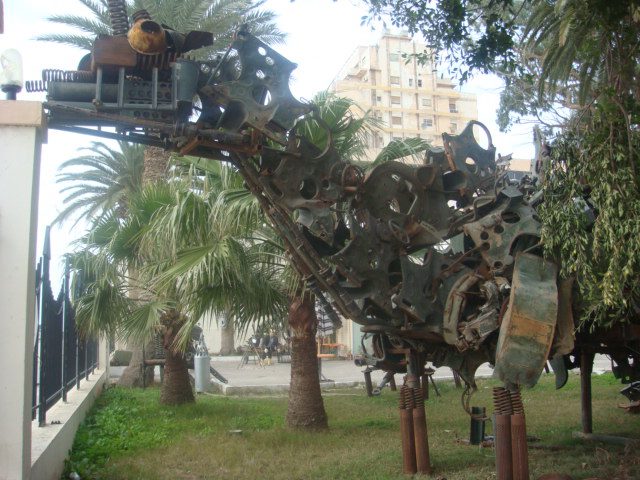 The largest sculpture that he has worked on is ‘The Dinosaur’ which is 35 metres in height. Al-Wakwak explains that it represents the Gaddafi regime in so much as it’s old, heavy and also now extinct. He adds that hopefully the Arab Spring and the revolution in Libya will inspire others to fight and overcome their very own ‘dinosaurs.’