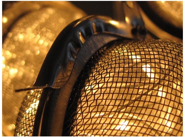 The lamp almost looks like a dangly pearl earring, or as though all the tea strainers are seeping in one glowing, communal mug.