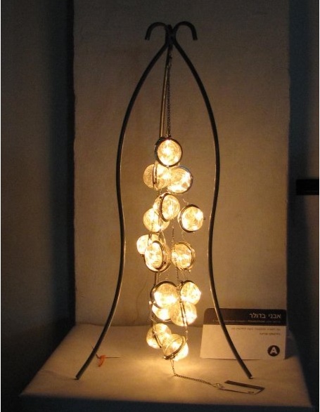 As an alternative light fixture, Israeli designer Marina Rudinsky lights up a string of loose tea strainers.
