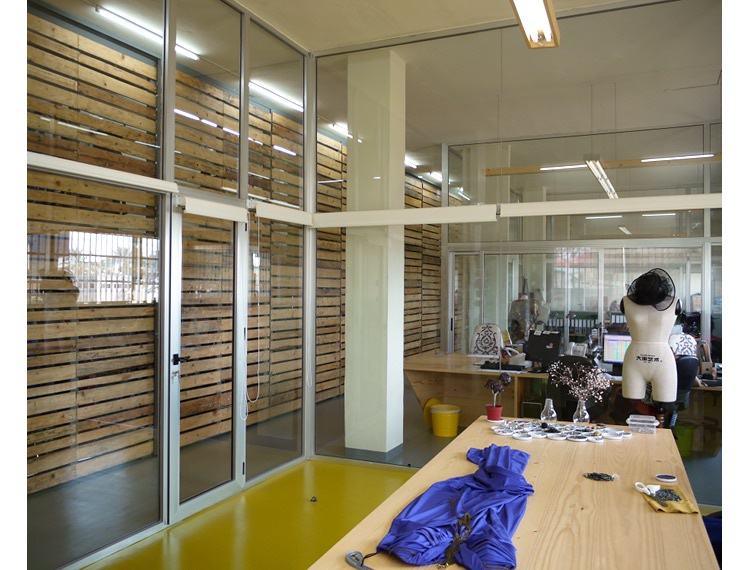 Avatar Architettura decks out a working space for fashion designers with chic recycled wooden pallets.