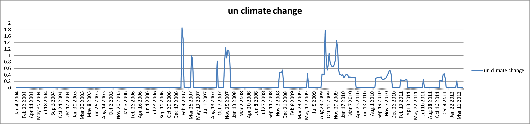 The trick will be ensuring that a diverse group of MENA participants benefit from the sudden surge in opportunities during that brief moment of time when climate change becomes vogue again. As shown here, at the end of every year since 2005 you can notice volume peaks of the word “UN Climate Change” in google search.