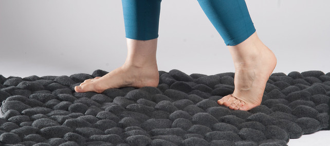 An Israeli designer creates a rug that incorporates real pebbles. Walking on them is like a foot massage!
