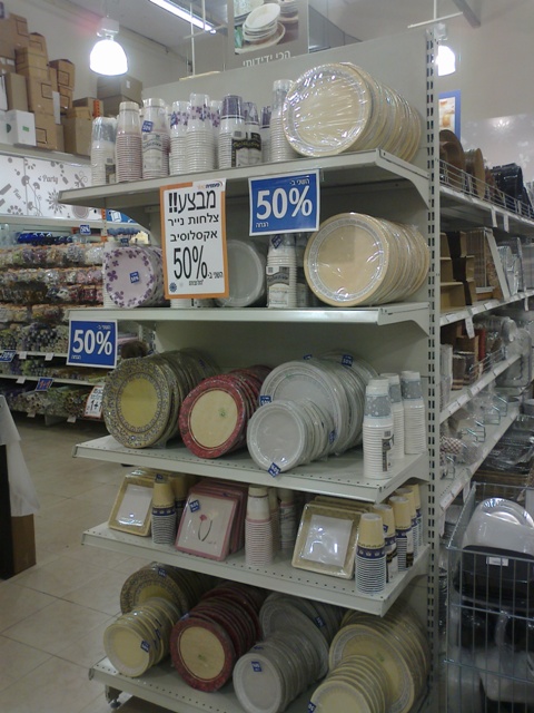 These dishes insure that the family using them will be Kosher for Passover, meaning that no leavened bread products or “hametz” contaminate them. But now, in Israel at least, a new trend is developing in which one-time-use dishes, cutlery, and even cookware is readily available at reasonable prices.