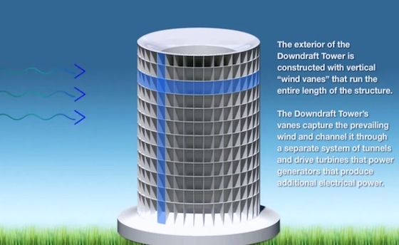 P. Michael, actually the plan is for a dual energy tower, both the downdraft tower and vertical turbines driven by prevailing winds will be used to increase efficiency. The article explains this in more detail.