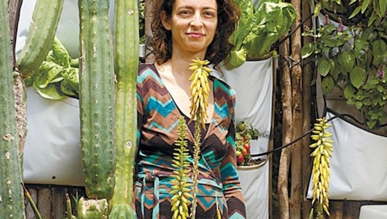 “The vertical greenery can enable the whole family in the city to grow a variety of plants, including assorted vegetables and herbs,” she says to Haaretz newspaper, pointing to tomatoes curling down from one of the holders hanging from the fence. “You can do this in any building and use a variety of materials.”