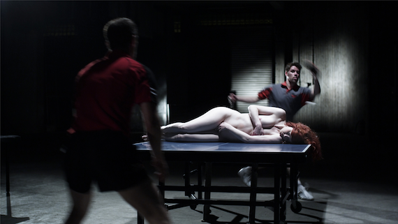 But it’s not all about titillation. The body is also shown in a social and political context. Iraqi artist Adel Abidin‘s video “Ping-Pong” shows men playing ping-pong with a naked woman in place of a net. Her skin is marked with red circles left by missed shots, her body shudders each time she’s hit. The woman represents “the Iraqi people caught in the midst of war,” said Makram-Ebeid. It’s also a metaphor for the oppression of women.