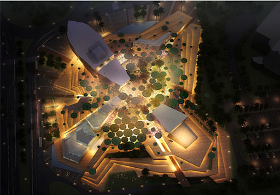Integrated with photovoltaic panels, a lily pad roof hovering over the center will provide both power and shading, while cooling and ventilation towers combined with high thermal massing will establish a comfortable microclimate for what is expected to be a vibrant public gathering space brimming with educational, entertainment, research and exhibition opportunities.