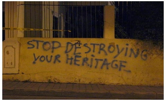 Graffiti in Achrafieh speaks against Solidere’s construction staregy that is destroying the historical identity of Beirut