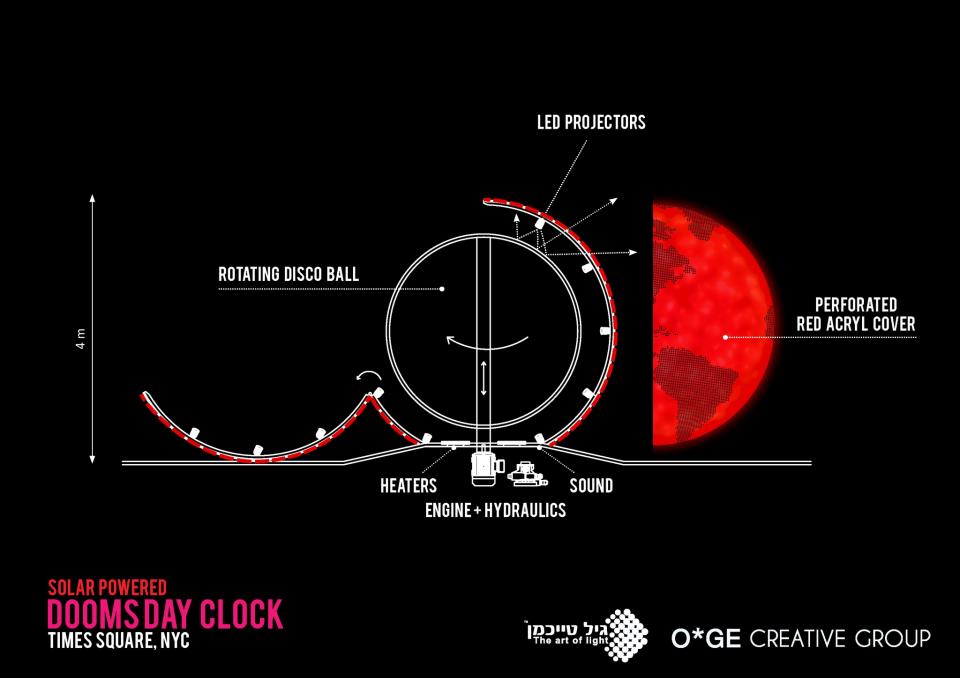 And when it does, they’re going to throw a party – only this street party in the heart of Times Square will kick off with a glittering 3 meter disco ball that will spill out from the doomsday clock’s glowing red belly.