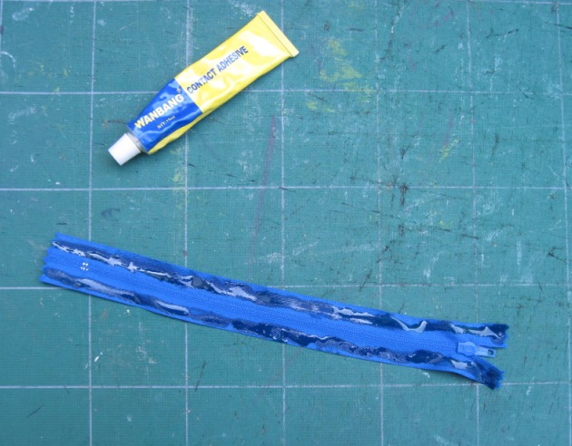 Glue the zipper around the bottom (undecorated) strip of the bottle.