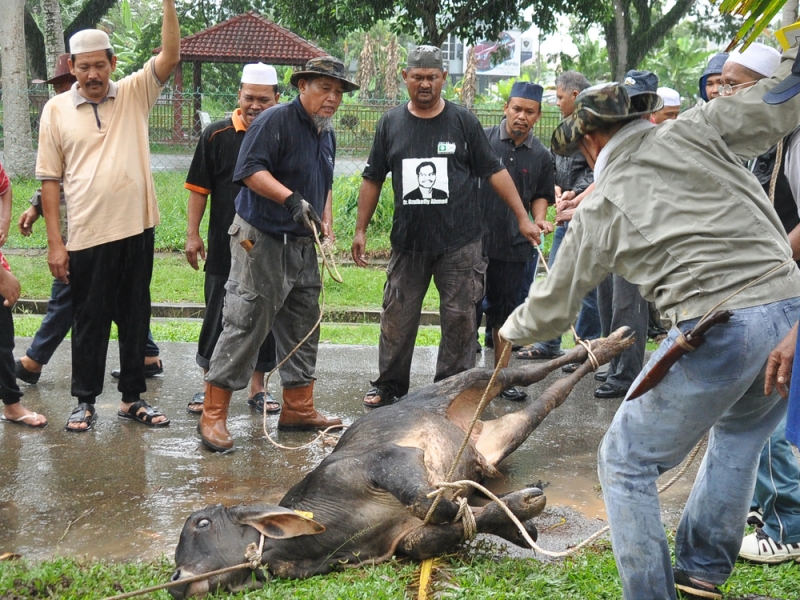 The large numbers of animals that are slaughtered for the four-day Eid al Adha holiday feasting and the frenzy in which many of these animals are slaughtered resulted in a tragic incident in the Palestinian territory of Gaza in which a panicking cow killed a man who was trying to slaughter it on Saturday for the Eid al Sdha feast.