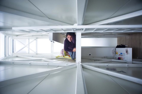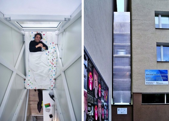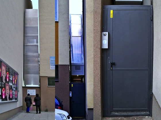 We’ve all been trying to imagine: just how skinny is Etgar Keret’s Ermitage house in Warsaw, Poland? Literally wedged between two buildings, the studio is one of the most talked about tiny homes on the web. Designed by Jakub Szczensy of Centrala as a tribute to Keret’s family who died during the WWII Holocaust, the project also has a humorous side. Step in for photos and a bonus cartoon at the end which briefly outlines the origin of this crazy idea.