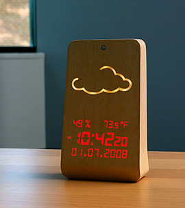 When the LED display is off, it looks like a desktop sculpture, available in a variety of woods.