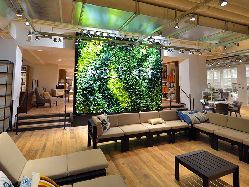 “The positive feedback that we have received from everybody with the green wall is an important factor of why it is part of our new store design concept for West Elm. It is attention grabbing and a major centerpiece for the store where people can stop to interact and admire the living artwork,” Patti Kashima, Director Store Design, Williams-Sonoma, Inc, said in a recent statement.