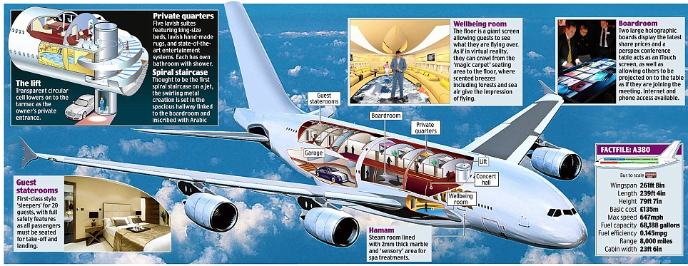 Design Q told the Daily Mail that the aircraft is, “not only the most luxurious aircraft in existence, but also reflects the cultural values and status of its owner.”