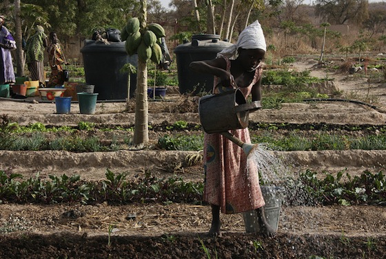: Image of young girl watering vegetables in Mali via abossuet/flickr.