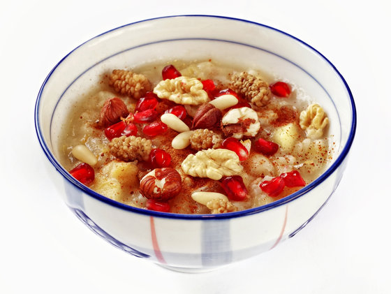 Nuts and especially walnuts, feature in many Iranian dishes, from savory ones like Fesenjan chicken to this hearty, sweet pudding. Pomegranate seeds add color and flavor. If pomegranates aren’t in season when you make this, substitute cranberries.