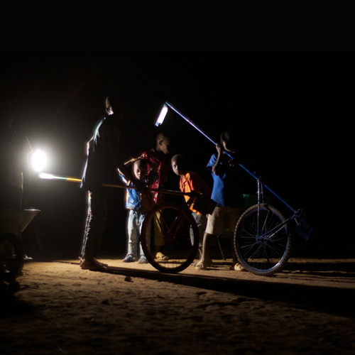 Applying the same tricks and tools used to construct the carts, the villagers crafted these wonderful solar-powered lamps out of bicycle parts and plumbing pipes that can be sourced from just about any Mali village.