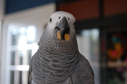 This grey Congo parrot could be at risk if exposed to cooking fumes from PTFE coated cookware