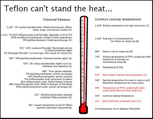 Chart showing effects of high cooking temperatures on PTFE coated utensils