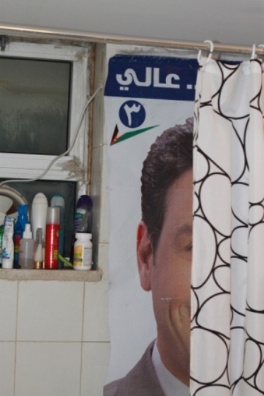 Looking around, I see that most Amman signage is made from this printed plastic. After elections, we could work with the printing and advertising companies to continue supply of discarded and out-of-date signage. The crafters would have an unending supply of free material. And if the market’s too micro for such a wacky line of goods: maybe stitch up reusable shopping bags and sell them to supermarkets to pass along to customers. How marvelous if one of these candidates would back banning of disposable plastic bags.
