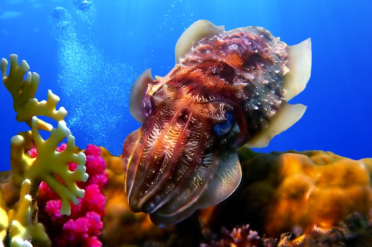 Stock image of coral and scuttlefish, Shutterstock