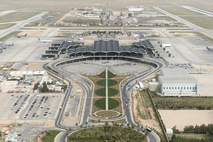 Tear-shaped skylights dot the spaces between the domes in order to allow plenty of natural light to penetrate the interior, a passive intervention that slashes the project’s energy consumption – also crucial given that the Hashemite Kingdom imports almost all of its energy. Outside a series of plazas planted with low-maintenance greenery and trees provide an aesthetically-pleasing gathering space, but it also helps to offset the airport’s carbon emissions – albeit in a very insignificant way.