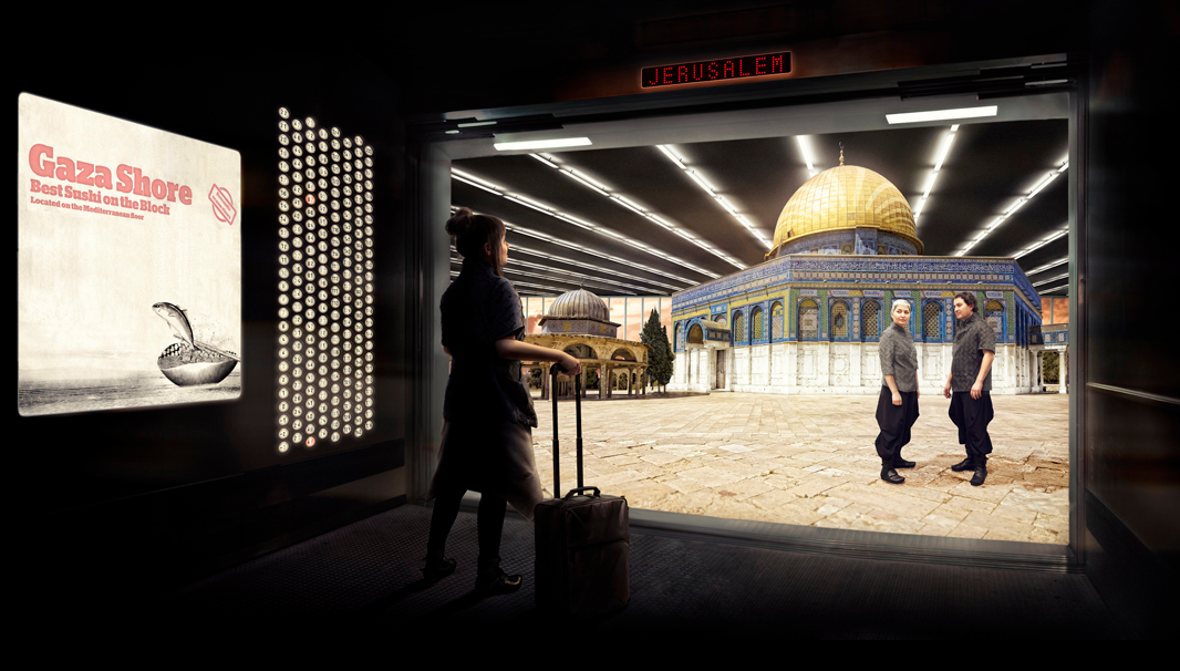 Conceived in 2011 when Palestinian authorities appealed to the United Nations for nationhood status, the sci-fi short film and photographic series takes a critical look at the impossibility of creating an actual physical space where the scattered Palestinian population can reunite. Sansour proposes, with a lot of tongue and even more cheek, an enormous (and obviously fictional) high rise.