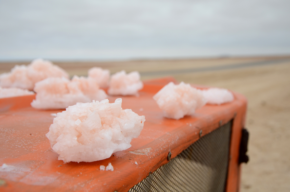 After visiting a seal colony in Namibia, I saw these beautiful crystals on the side of the road. There was not a man or woman in sight for miles, but I had the distinct feeling that if I picked one up and started to put it in my bag, someone would have appeared out of nowhere.