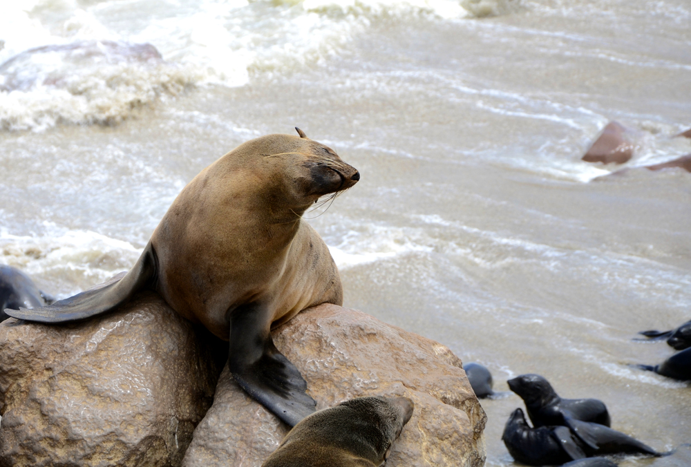 I’m anthropomorphizing, but I love how this seal at Seal Cross Colony in Namibia carries itself – so coy, like a bashful girl. The babies in the lower right corner were probably bludgeoned to death just months after this photo was taken. We can thank women who buy fur coats for that.
