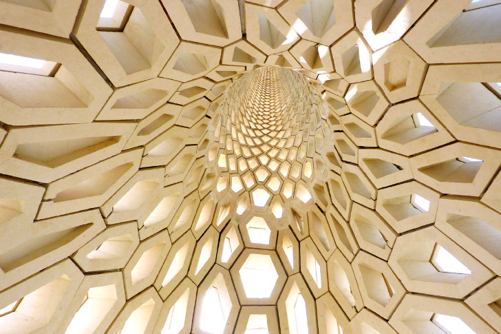 Built with hexagonal precast concrete blocks, this curious new design takes cues from ancient Islamic art and architectural motifs, and from coral – a once ubiquitous natural Red Sea feature that is now imperiled by various development projects along the coast.