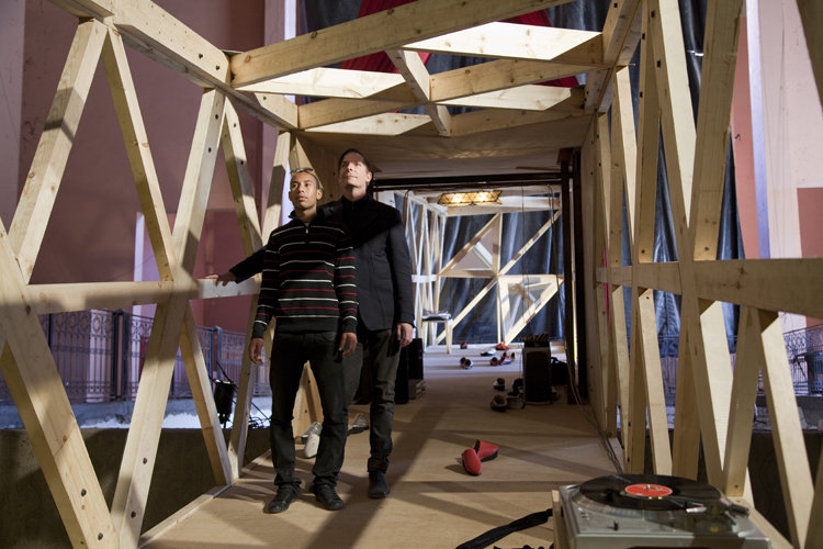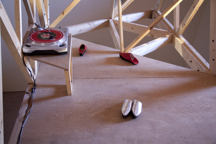 Tamara Friebel composed two separate soundtracks for the project using sounds from Morocco. These are played on record players positioned on either end of the moving timber frame.