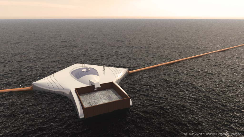 Multiple arrays will ring-fence each gyre. Its wings sway like a manta ray’s, ensuring full contact with water surface even in the roughest weather. The platforms, powered by renewable energy from the sun, currents and waves will be completely self-supportive and generate zero carbon emissions.