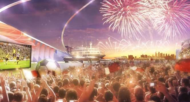 Electric vehicles, water taxis and ferries will transport football fans and venues for watching the games will be scattered throughout.