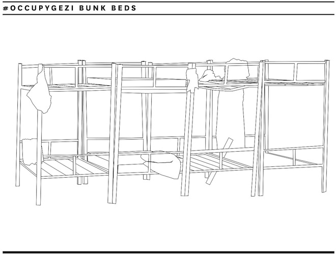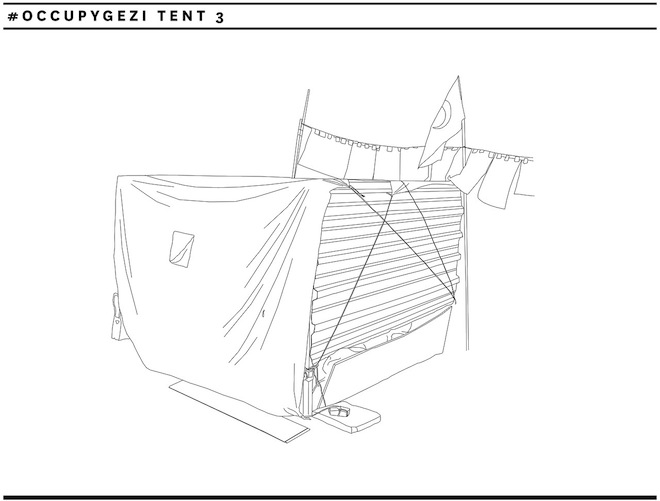 Design is an often overlooked aspect of any social protest movement, but the organic nature of its occurrence is of great interest to the Turkish collective Herkes İçin Mimarlık. Translated as Architecture for All, this group collected photos of shelters built from scrap materials during Turkey’s recent uprising and then made drawings of them.