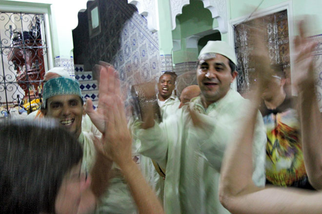 Through it all ran the common thread of music: the rhythmic hand clapping of Dakka Marrakchia musicians in Marrakech; bejeweled Berber women ululating impossibly high notes as men in flowing white caftans beat panel drums around a campfire; and in the desert, hours-long chanting of Gnaoua spiritual songs dedicated to prayer and healing.