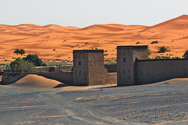 An afternoon Sahara sandstorm pelted my bare legs with razor sharp grains of sands as I struggled to stay on a galumping camel, but by morning the exquisite dunes stretched like coral colored waves against a luminous blue sky.