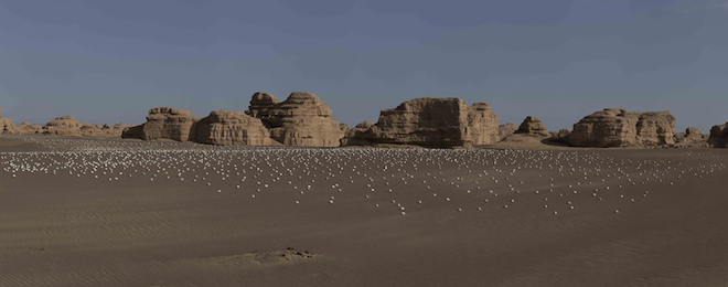 There is something so haunting about desert landscapes, and much as we love our own in the Middle East region, we are blown away by China’s desert scenes depicted through Shi Shaoping’s “The Eggs” art installation.