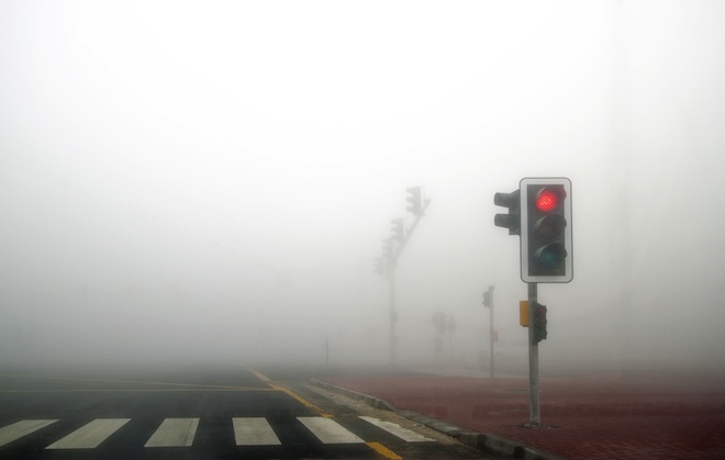 Image of foggy Dubai road, Shutterstock