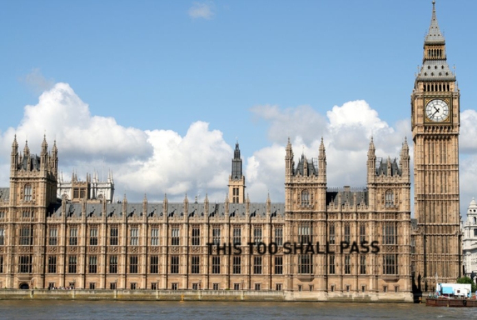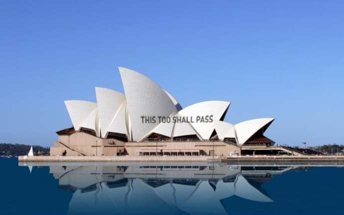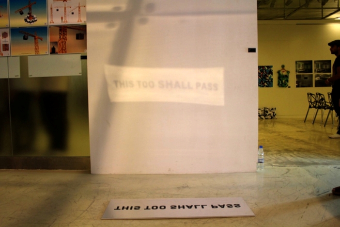 The prototype states simply, “THIS TOO SHALL PASS”, but there’s no limit to possible content. Each mirror would be situated to reflect beams from the rising and setting sun onto a large vertical surface, ideally iconic buildings that are frequently visited or photographed.