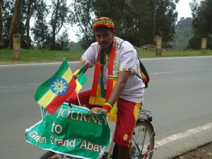A former lecturer at Sodo University, Mr. Gizaw rode for two months as part of a self-initiated environmental awareness campaign.