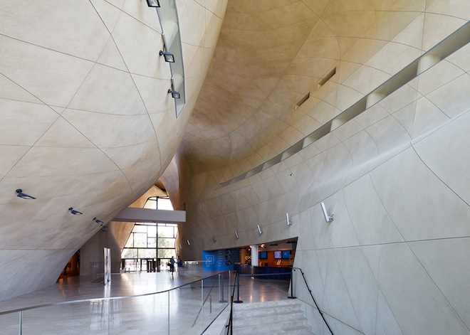 While the load-bearing curved walls presented an engineering challenge and mitigates the kind of sterile environment that so many museums accidentally exude, the design is deceptively simple, and helps to keep the building’s overall footprint to 4,400 square meters.