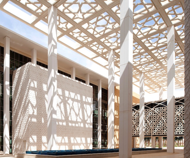 Although the Medical Center and some parts of the research center are co-ed, most areas of the university have been structured to accommodate only female students. In part this is facilitated with certain Islamic design strategies, including mashrabiy’yah or latticed screens that provide privacy without choking off outdoor spaces.