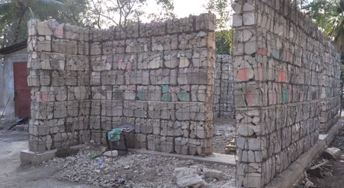 Gabion structures reuse the rubble left by Haiti’s devastating 2010 earthquake. Fragments are placed into wire baskets creating blocks to build retaining walls and earthquake-proof structures.