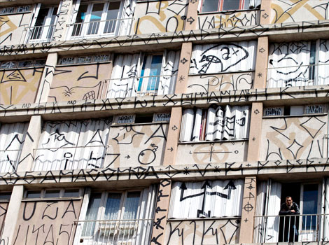 Artists worked for seven months to “graff” 4,500 square meters of interiors, façades and stairwells, donating their work in exchange for accommodation and materials. All were cool with the notion that their art would be destroyed with the building.